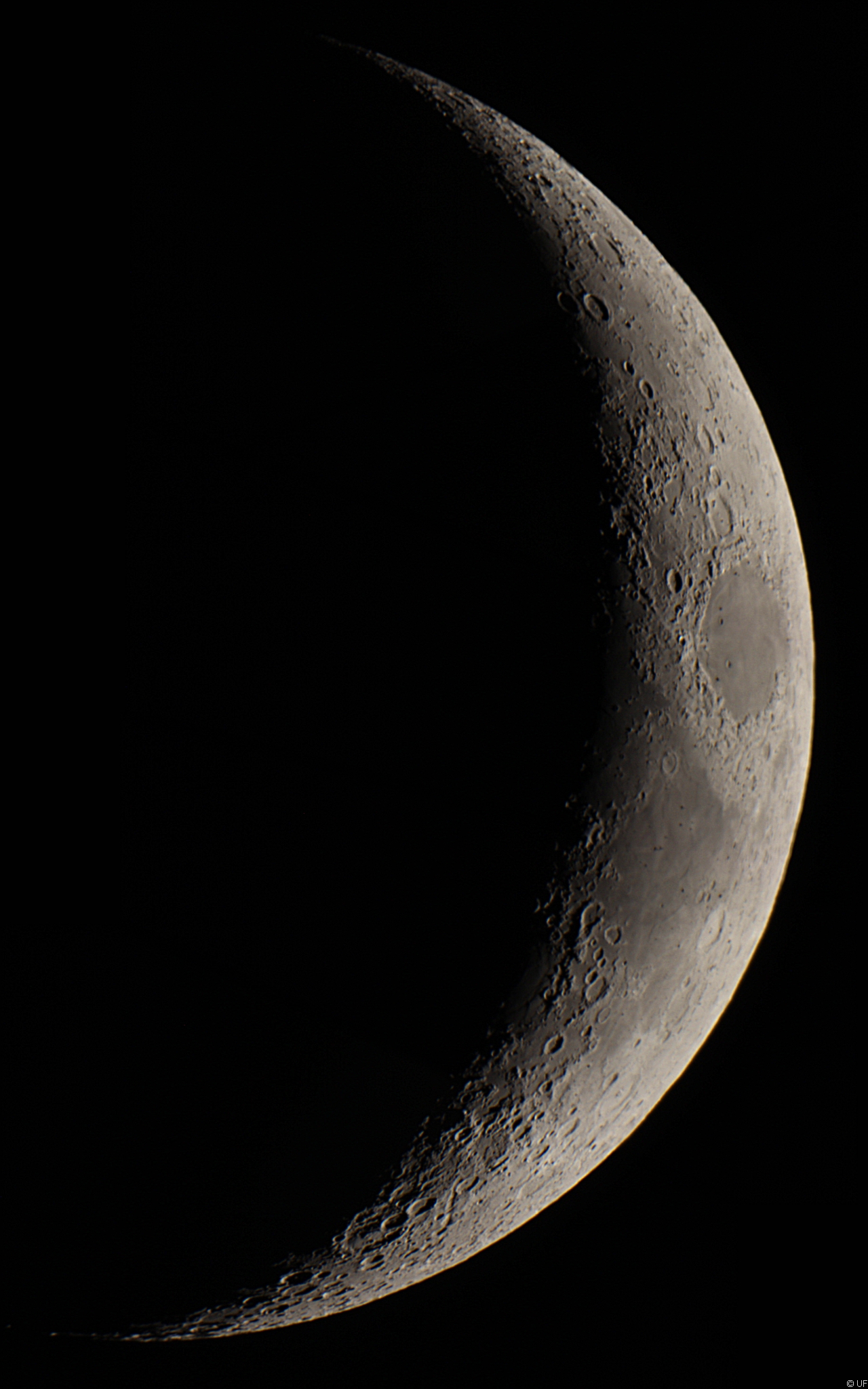 Zu sehen ist die zunehmende Mondsichel die zu 17% beleuchtet ist.